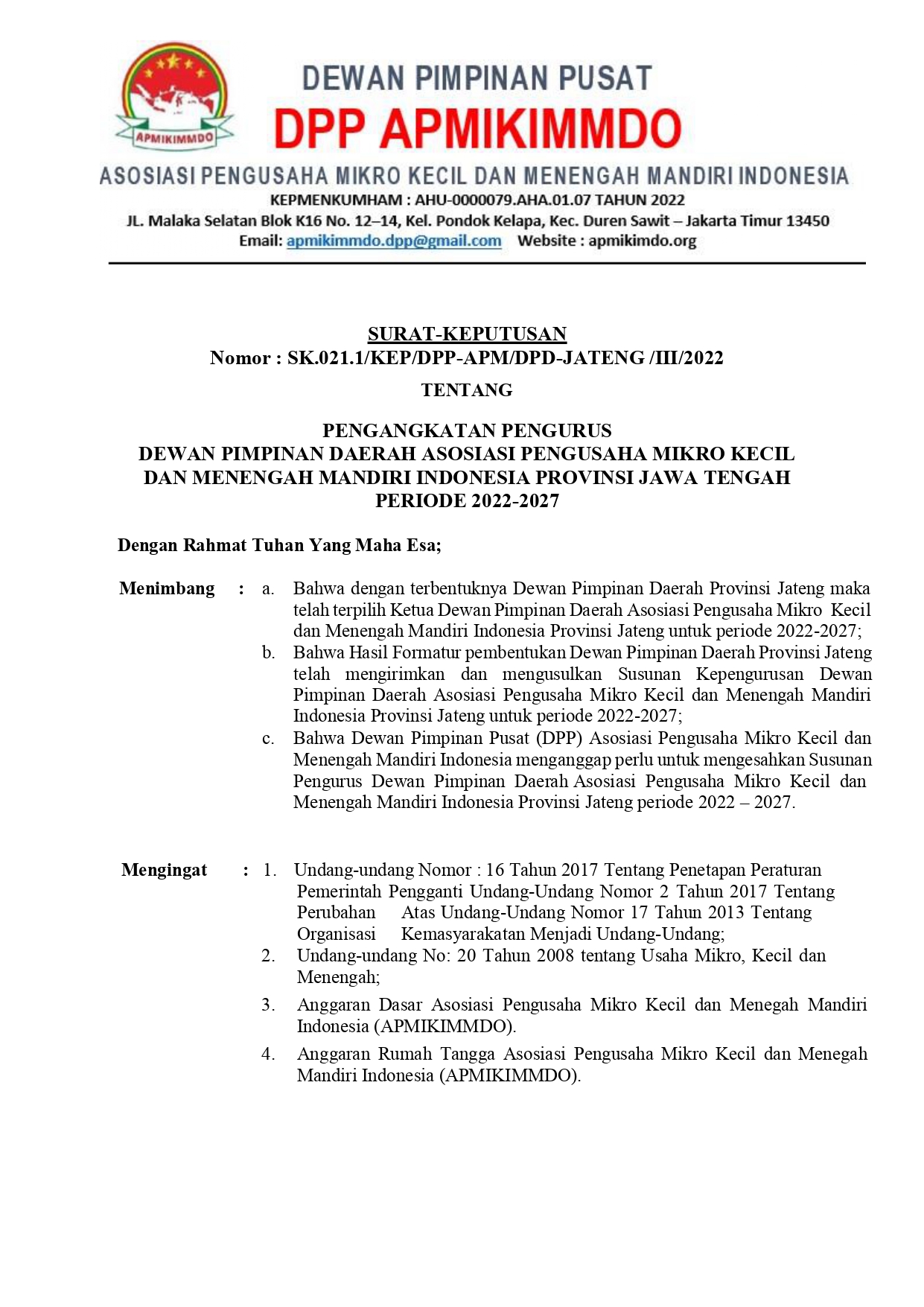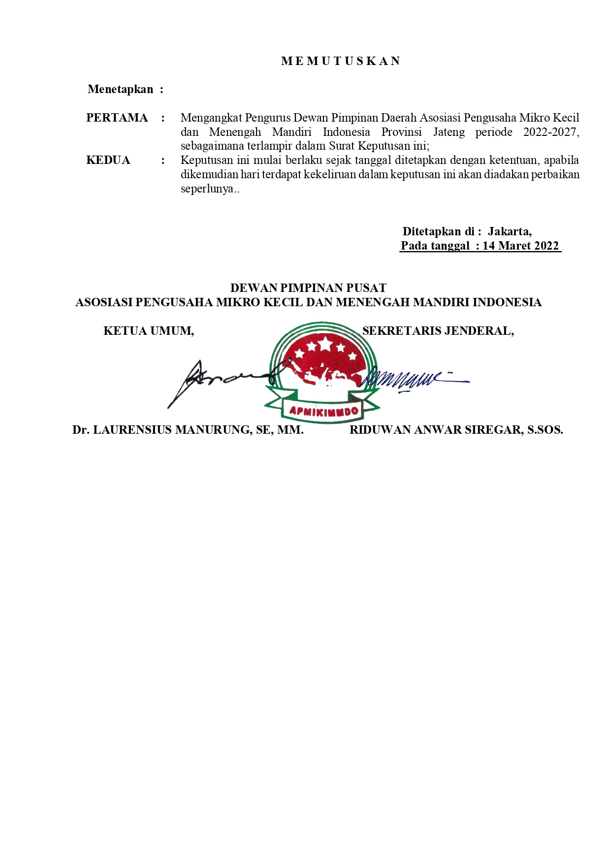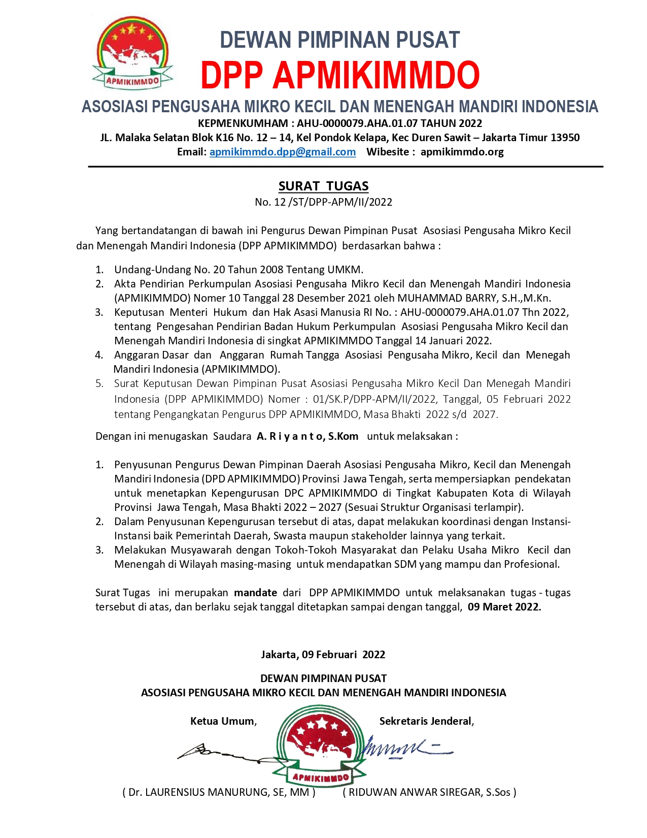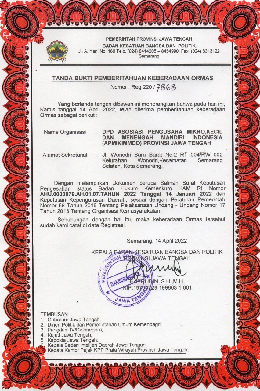 APMIKIMMDO adalah Asosasi Pengusaha Mikro, Kecil dan Menengah Mandiri Indonesia, dimana Asosiasi ini didirikan oleh para profesional , pengusaha dan pemerhati dalam membina dan Memajukan Usaha Mikro Kecil dan Menengah Indonesia